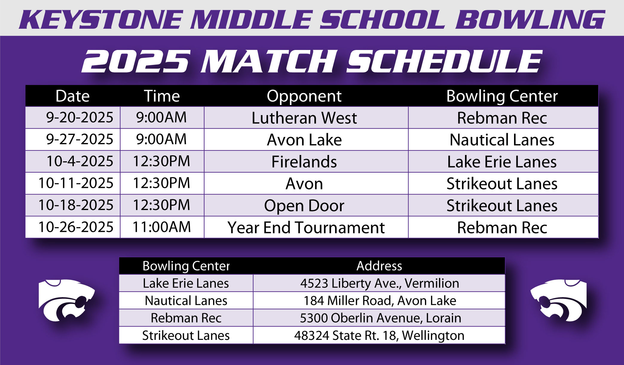 MIDDLE SCHOOL BOWLING - SCHEDULE